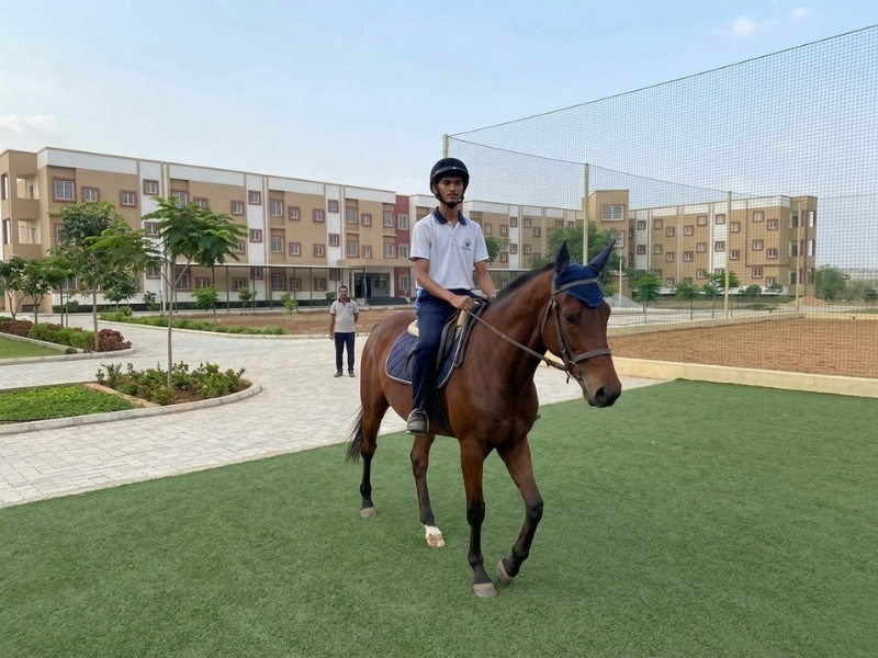 Daily sports — football, cricket, horse riding, swimming, basketball, athletics. Nutritious meals. Scheduled rest. Mentoring and counselling. Top results without sacrificing wellbeing.