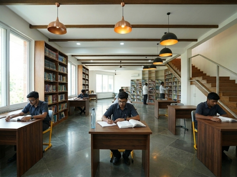 Library + study halls. Faculty available for 1:1 doubt clearing.